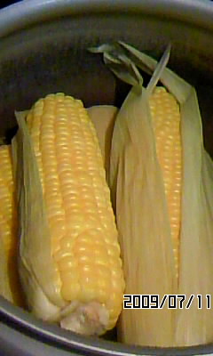 トウモロコシ、うちでは圧力鍋でまとめて蒸し上げます。