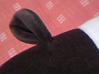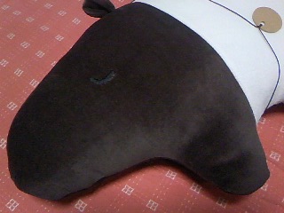 バクちゃんはちょっと平らめなふっくらしボディ。お魚みたいな立体感なので、真正面から見ると変な顔なんですよ。くすくす。