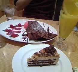 手前が私のモカケーキwithコーヒー。たいへんおいしゅうございました。(^-^)